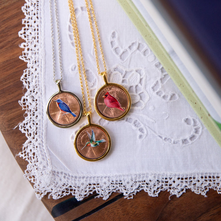 Every piece is a reminder of love, hope, and connection — whether it’s the comforting visit of a Cardinal, the joyful presence of a Bluebird, or the uplifting energy of a Hummingbird. Handcrafted in the USA, these lockets feature a custom digital print, 3/4" pendant, and come on a 20" rolo chain with 2" extender in your choice of 18kt gold plated or silver plated finish.